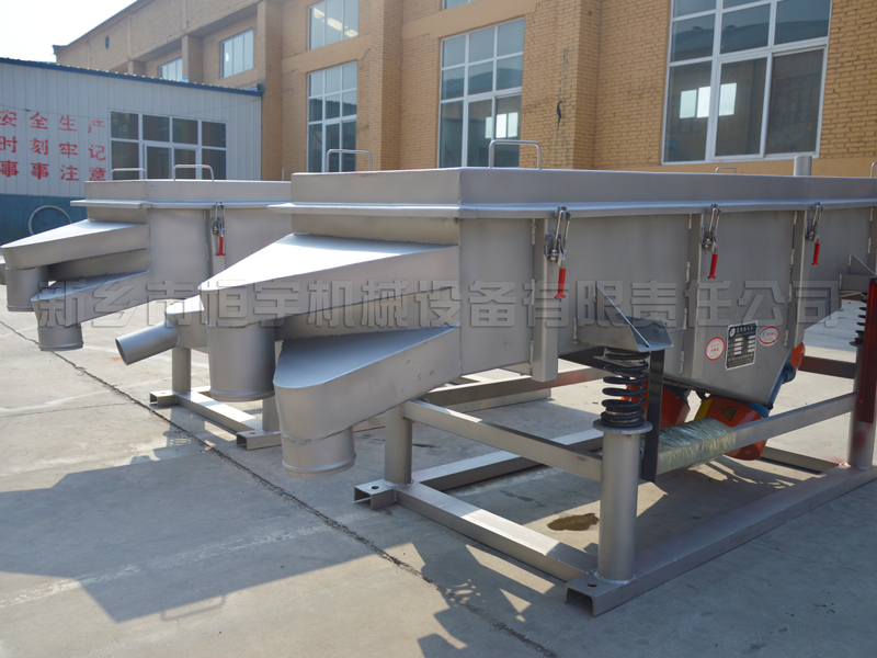 直線振動(dòng)篩又稱輕型直線篩,用于粉狀或顆粒狀干式物料的篩分或液體物料的過濾,篩分細(xì)度可達(dá)到325目/英寸。采用角度可調(diào)控的激振源,根據(jù)客戶篩分過濾要求可單層或?qū)邮褂?,層?shù)可達(dá)到五層。篩框一般為木質(zhì)結(jié)構(gòu),若篩分腐蝕性物料時(shí),與物料接觸部分可以采用不銹鋼制作。